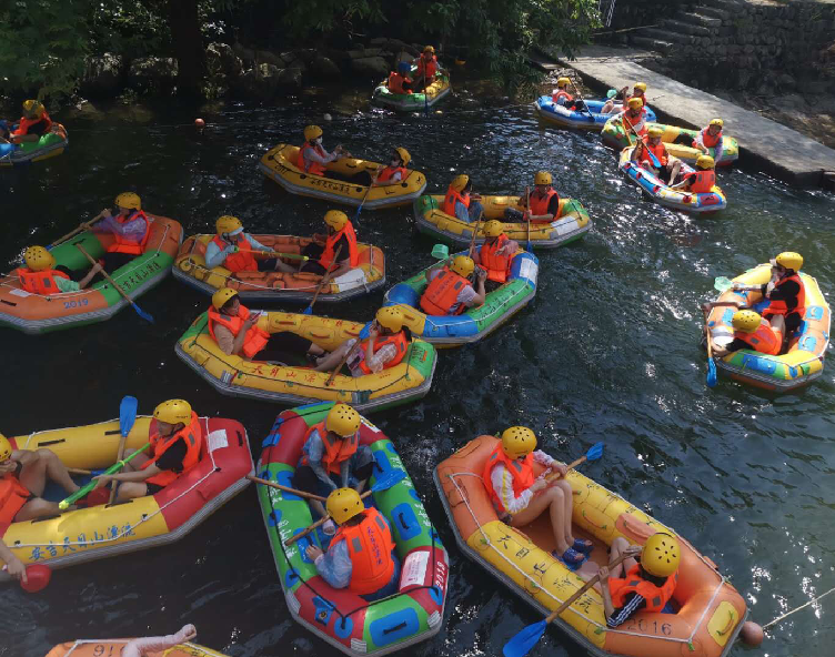 第一天的行程轻松又愉悦。到达安吉天目山漂流目的地,小伙伴们看到依山傍水的环境,心情瞬间变得舒朗与清爽。同事们有序的穿戴好救生衣物,排队等候参加水上漂流。整个漂流全长3公里,后勤组特意给每组伙伴准备了水枪和水瓢,原本以为悠闲的漂流瞬间变成了水上大战...小伙伴们在漂流的过程中彻底放飞自我。