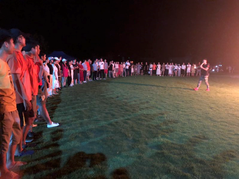 夜幕来临时,晚上同事们来到了山间草地上串起烧烤、唱起歌。篝火晚会,处处欢声笑语。原本宁静的乡间夜晚回响着同事们阵阵欢声笑语。