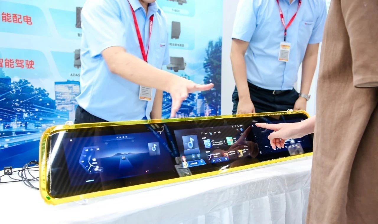 本次展出的三联屏是一款高端车载显示解决方案,搭载芯驰X9系列soc的智能联屏,可实现智能感知、智能交互等功能,同时该系统采用了最新的液晶显示技术,具有高亮度、高对比度宽视角等特点,在任何光线条件下都能为驾驶员提供清晰的视觉体验,提升整车智能化感受。